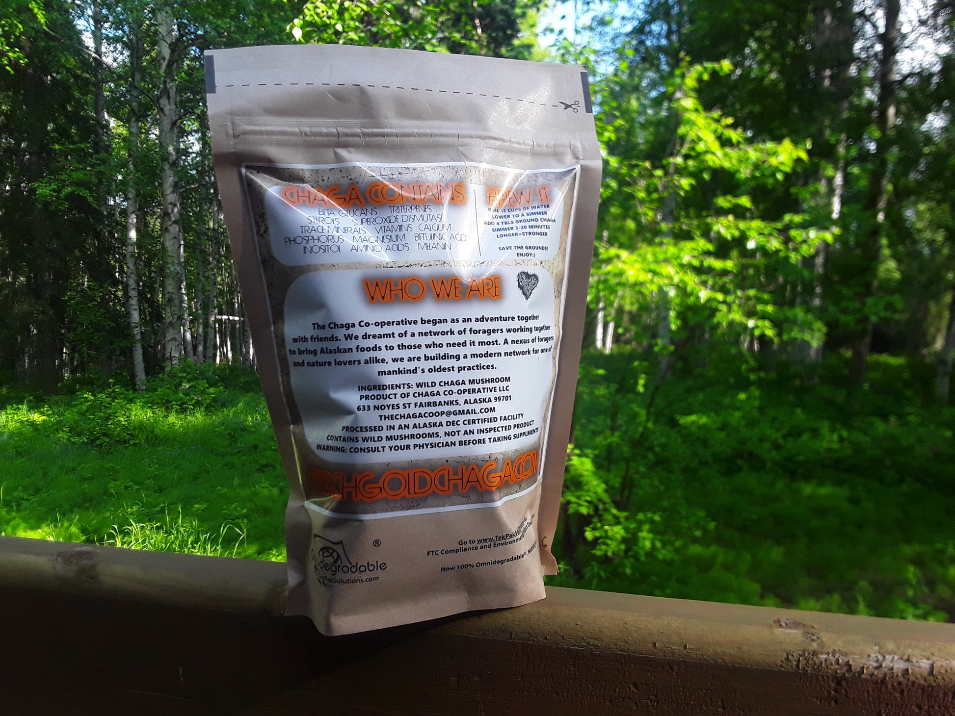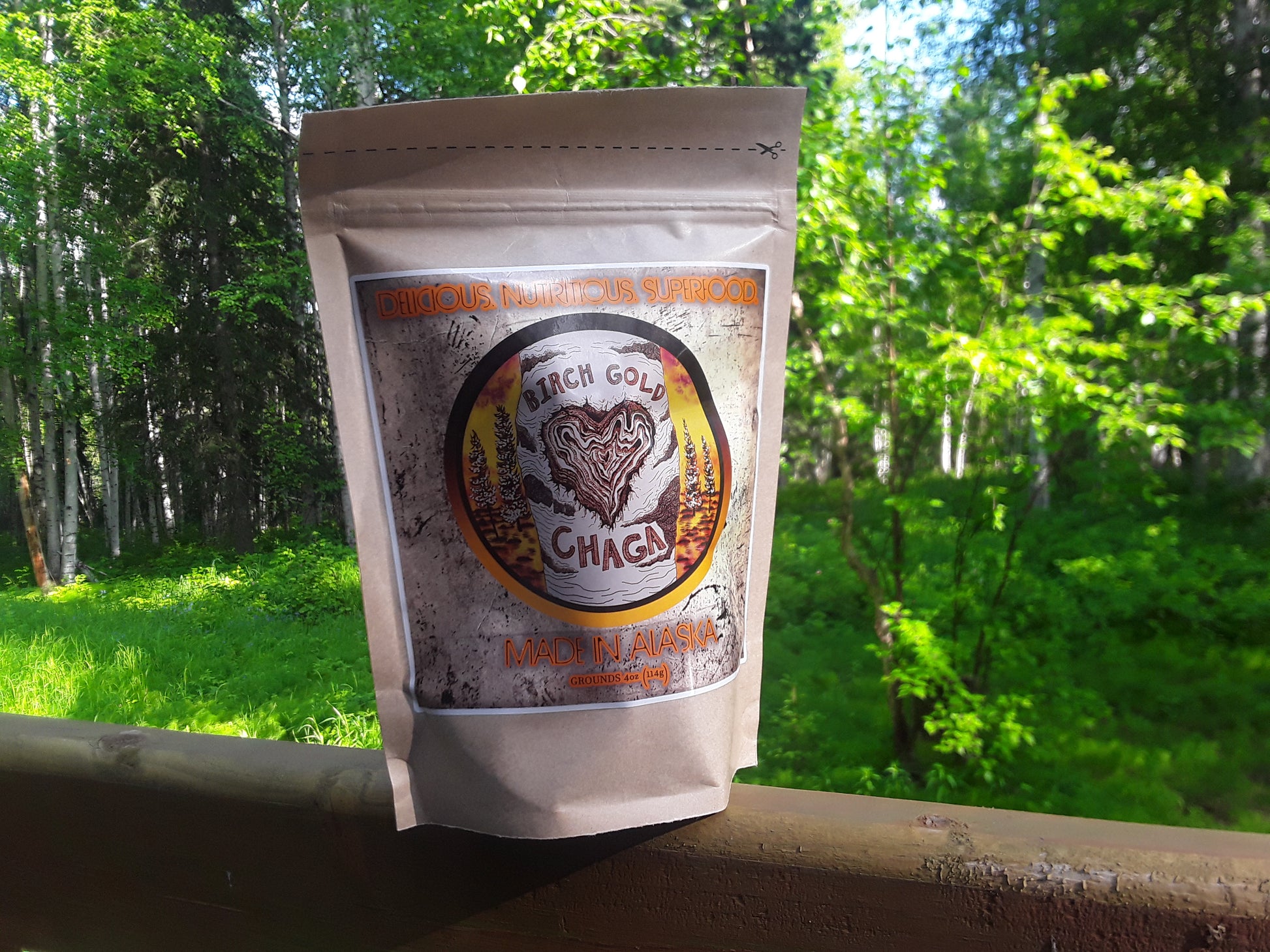 Chaga grounds, wild harvested in Alaska, and sourced from the Chaga Co-op, Alaska’s only ethical wild-foods foraging cooperative.